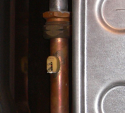 Si vous voyez de l’eau s’écouler par la soupape de sécurité chauffage D alors que la pression est correcte, c’est que cette dernière fuit. Il faudra donc la remplacer et faire vérifier le vase d’expansion. Attention ici la soupape n’est pas reliée à un écoulement ,il est donc facile de voir si elle fuit. Dans le cas où elle serait reliée , il faudra desserrer l’écrou pour la vérifier.
